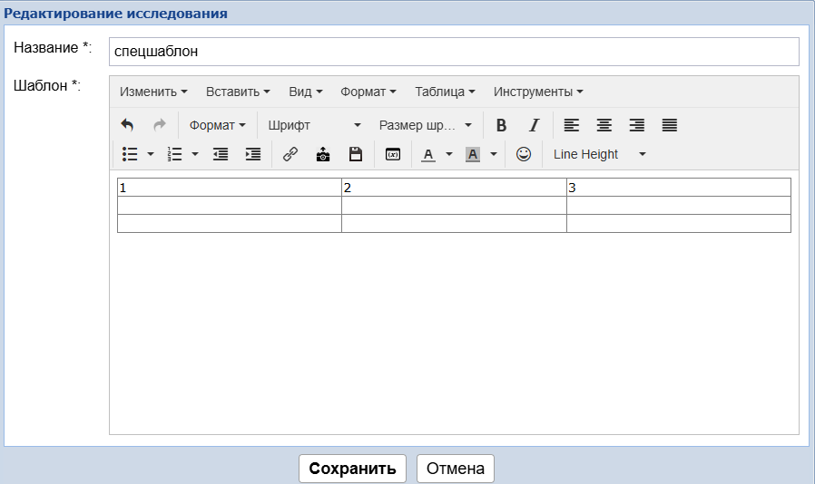 !!!Если шаблон уже использовался в медкартах, то его уже нельзя отредактировать. Нужно его скопировать и в копию внести изменения, а старое исследование деактивировать.