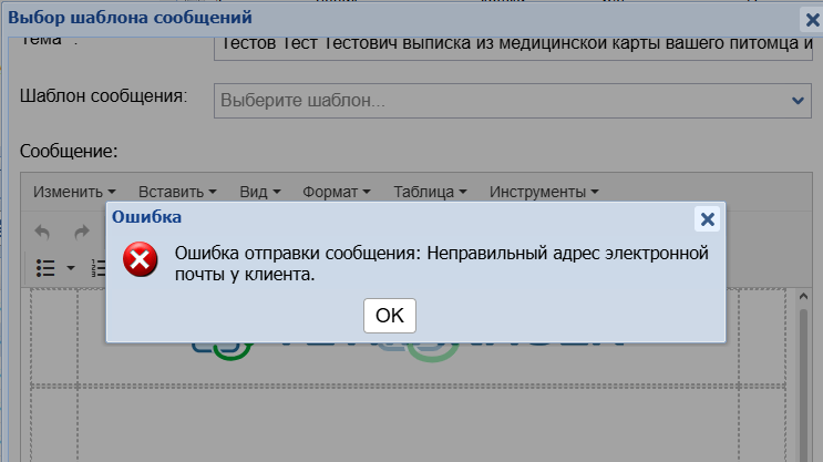 Если при попытке отправить письмо с медкартой вы получаете ошибку