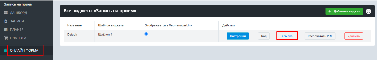 В разделе Онлайн-форма необходимо кликнуть по слову Ссылка, чтобы скопировать ссылку на вашу онлайн-запись.
