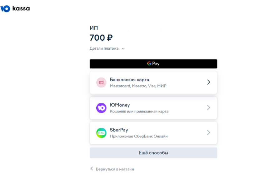 Нужно нажать Перейти к оплате. Откроется страница Юкассы/LiqPay, где нужно оплатить услугу. В виджете при этом остаётся окно с информацией об ожидании платежа.