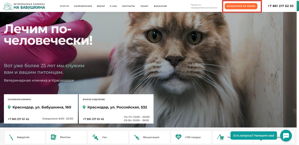 После этого он попадает на сайт клиники, может ознакомиться с ее услугами и другой полезной информацией и воспользоваться кнопкой онлайн-записи.