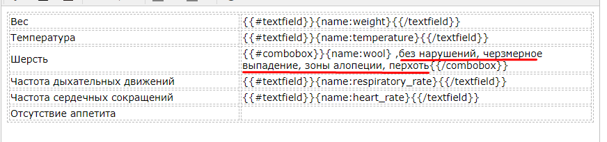Именованные поля в спецшаблонах позволяют следить за динамикой жизненных показателей питомца.