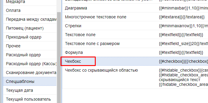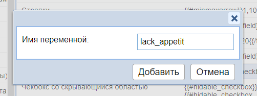 Далее добавим чекбокс. Для этого выбираем Спецшаблоны → Чекбокс →Нажимаем кнопку Добавить переменную