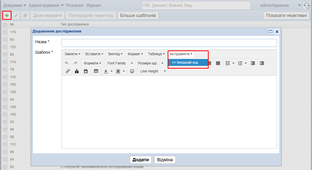- Перейдіть в програмі в модуль Спеціальні дослідження (зазвичай він знаходиться в робочому місці Адмінка, група Довідники).